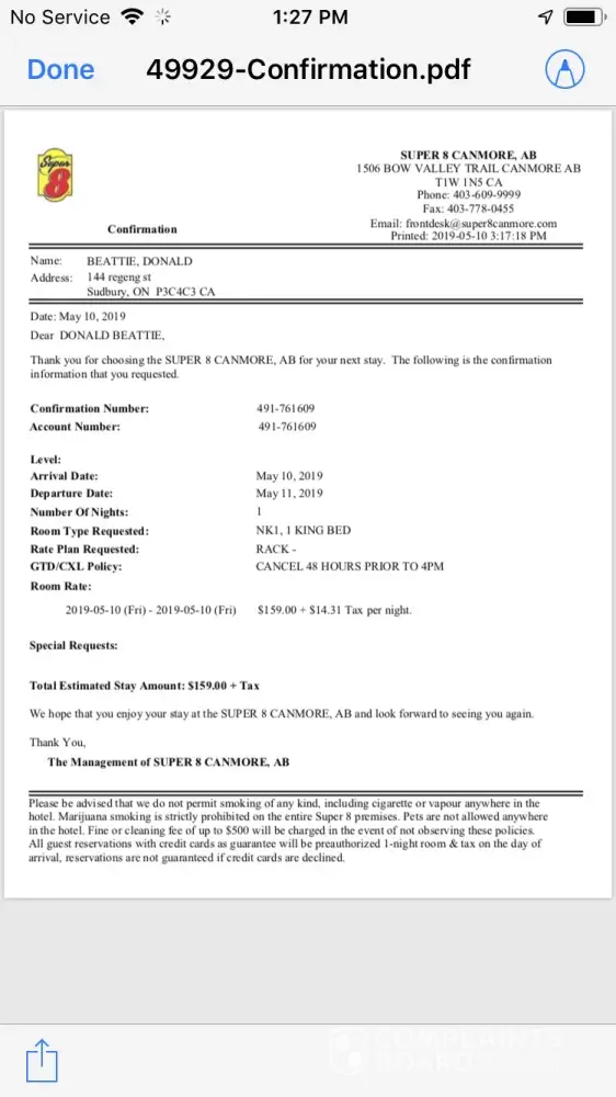 I booked a roomon friday the 10th for friday the 10th in Canmore, AB then was called into Edmonton to a medical emergency with my mother.
