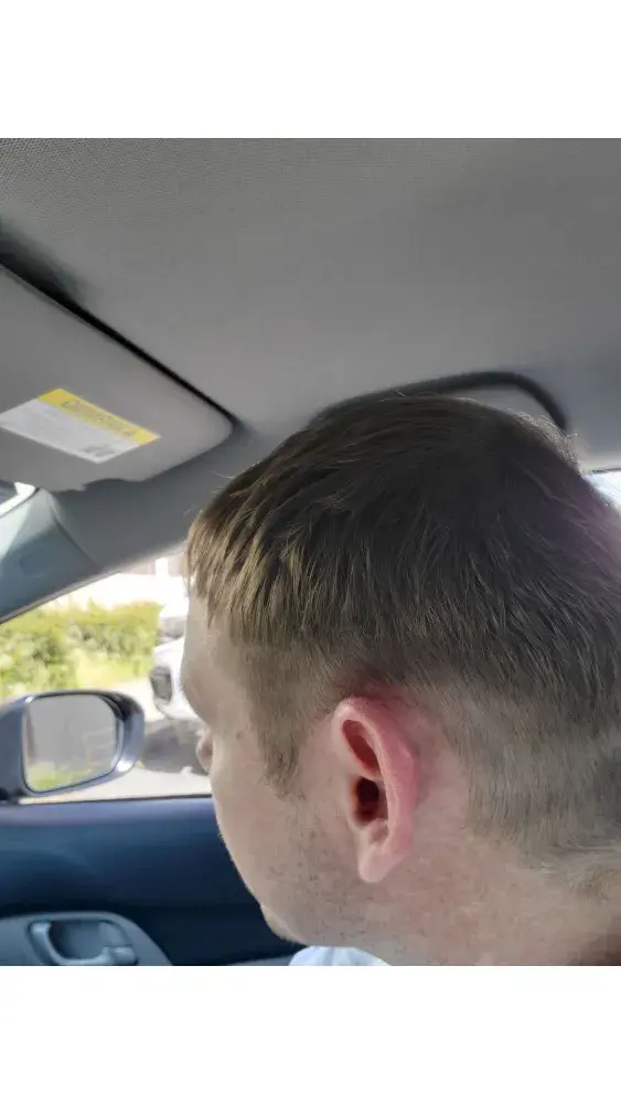 I am a male came home to find hair still over my ears , the length in the back and top was longer then other areas the blend was [censored]ty, I told her to go short around the back where I'm have male bald pattern happening she said its the style to comb over. its not what I ask for and the price for a hair cut $30.00 and a ten minute or less cut! My husband...
