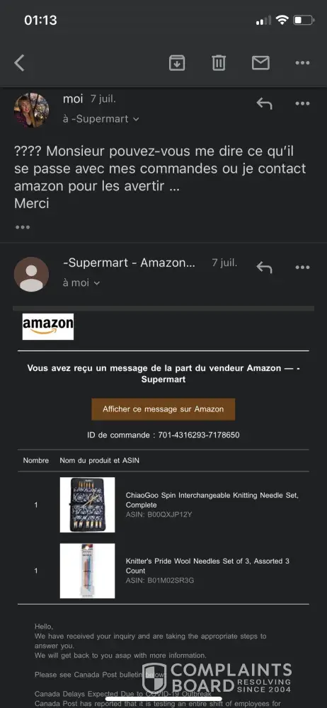I PURCHASED AN ITEM FROM THEIR WEBSITE AND HAVE BEEN GETTING THE RUN AROUND FOR A WEEK. FINALLY I LOOKED THEM UP ON THE BETTER BUSINESS BUREAU AFTER CALLING THEIR NUMBER TODAY AND IT FORWARDED TO A MAN'S PERSONAL CELL PHONE WHO STATED HE WAS NOT AFFILIATED WITH AMAZON NOR SUPERMART. THE ADDRESS PROVIDED IS A 3 BEDROOM HOUSE. Now I have to go and dispute my payment and report them, etc. WHAT A SCAM. BEWARE!