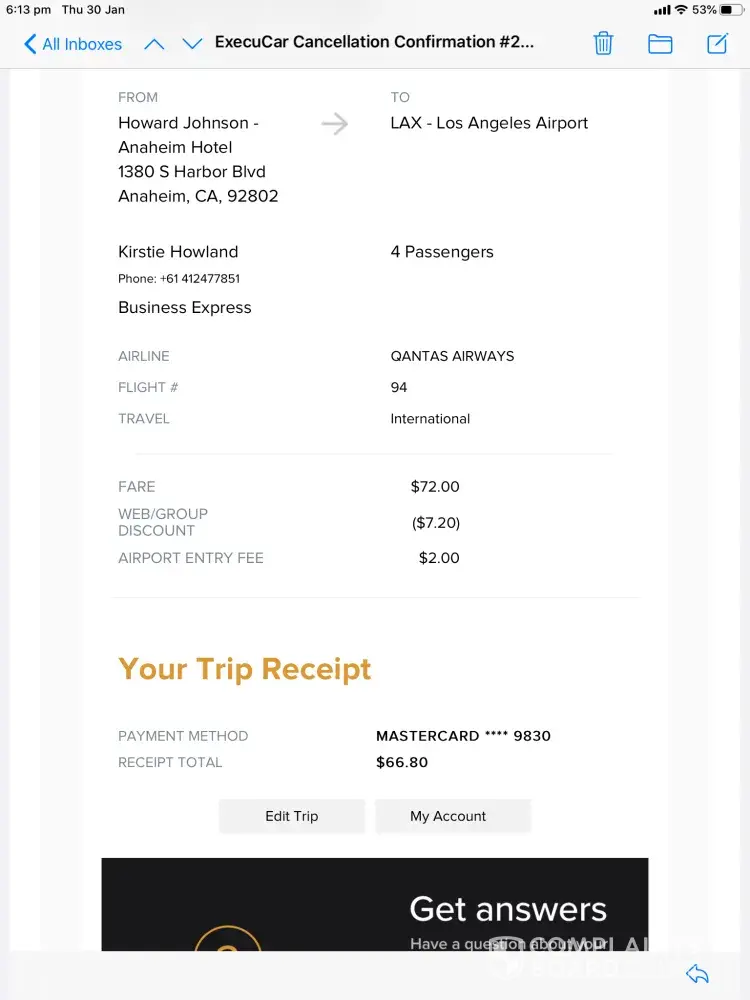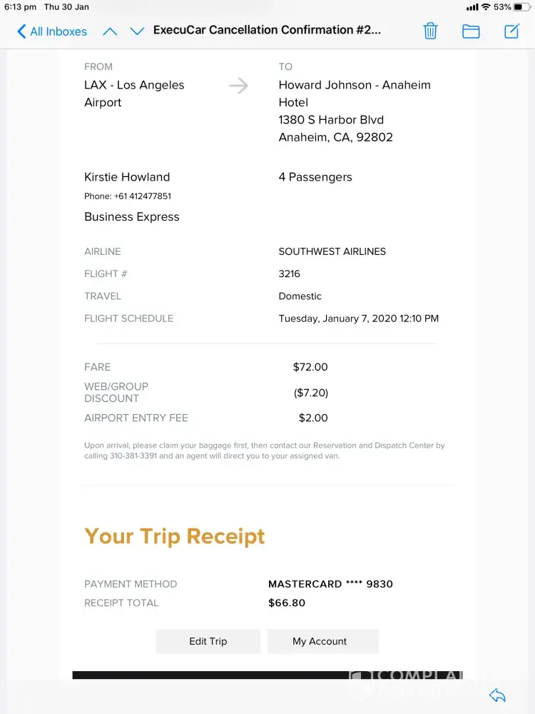 pre paid for a service lax to anaheim and return for january. cancelled as supershuttle out of business in lax. full refund not received