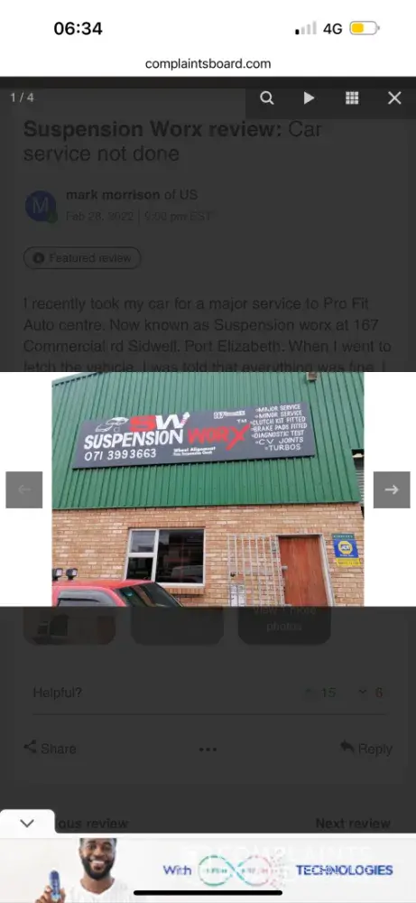 I recently took my car for a major service to Pro Fit Auto centre. Now known as Suspension worx at 167 Commercial rd Sidwell. Port Elizabeth. When I went to fetch the vehicle, I was told that everything was fine. I then went home and inspected. I found out that the spark plugs were not changed, pollen filter and air filter were not changed. I took the car back to them. They denied and said that they changed everything. Motorists please never take your vehicle to these people. They are liars and will damage your car and lie, so that you can pay more money.