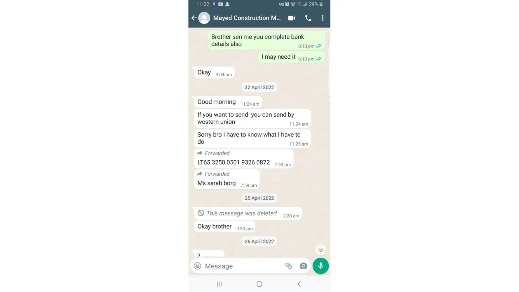 Mr Majed Syrian national, resident in Malta post fake jobs on social media like urgent requirement of construction workers in Malta with attractive salary. He then asked for advance payment for visa approval and lawyer fee from €2000 to €6000 once you transfer the payment your phone now will be blocked and you will never get any approval or work permit. Please be aware of this guy