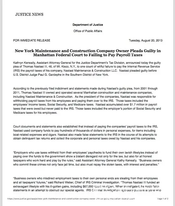 Read full complaintNastasi Maintenance and Construction - Thomas Nastasi III and Gabrielle Nastasi