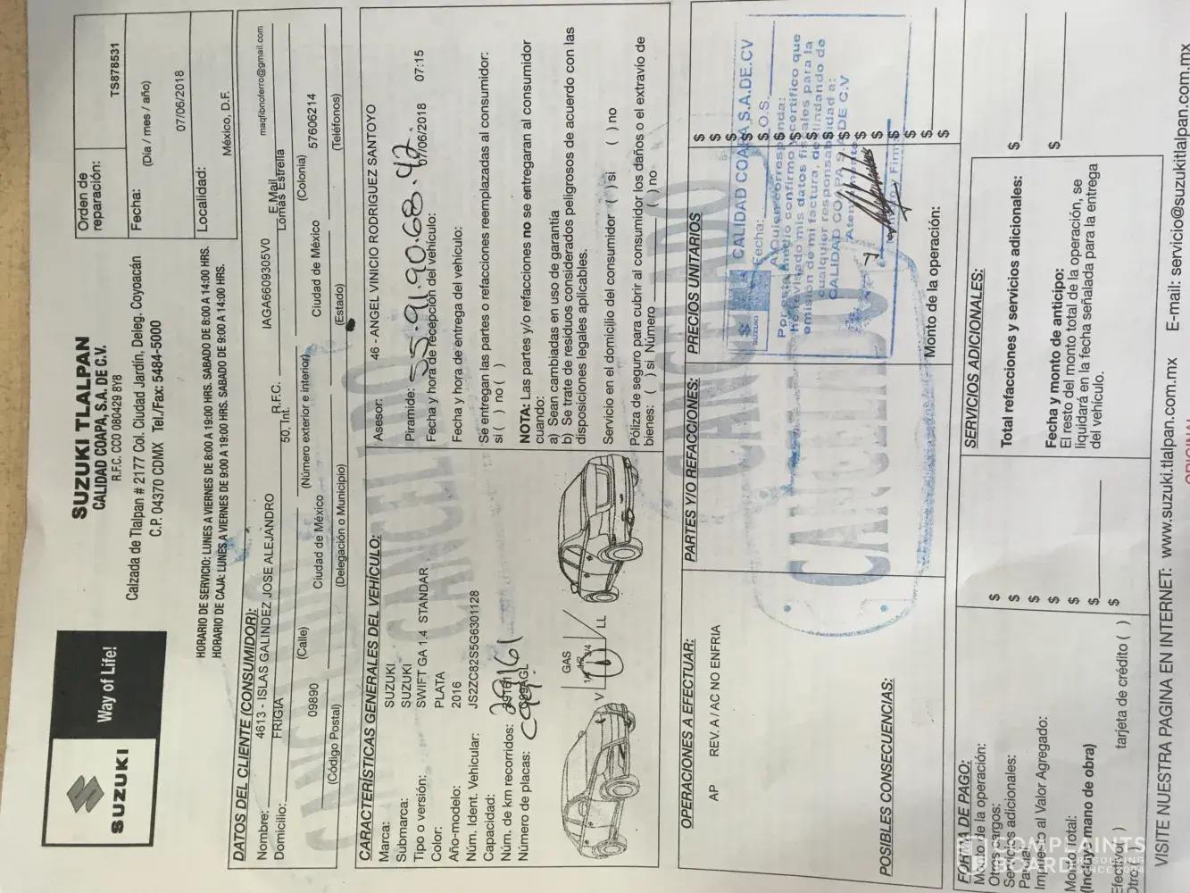 My car presents overheating, I call the dealer and the send a pick up truck. After cheching the car at the dealer they said that the car was ready. Took the car back home and present the same overheating. I look at the car engine and look like they have not done anything. I stop the car and call back the dealer ship. All the atention have been really bad. And my car problem have not been resolve. My car Is ignis Suzuki number serial JS2FH81S3H6101484 Was attendee in México city Suzuki Polanco