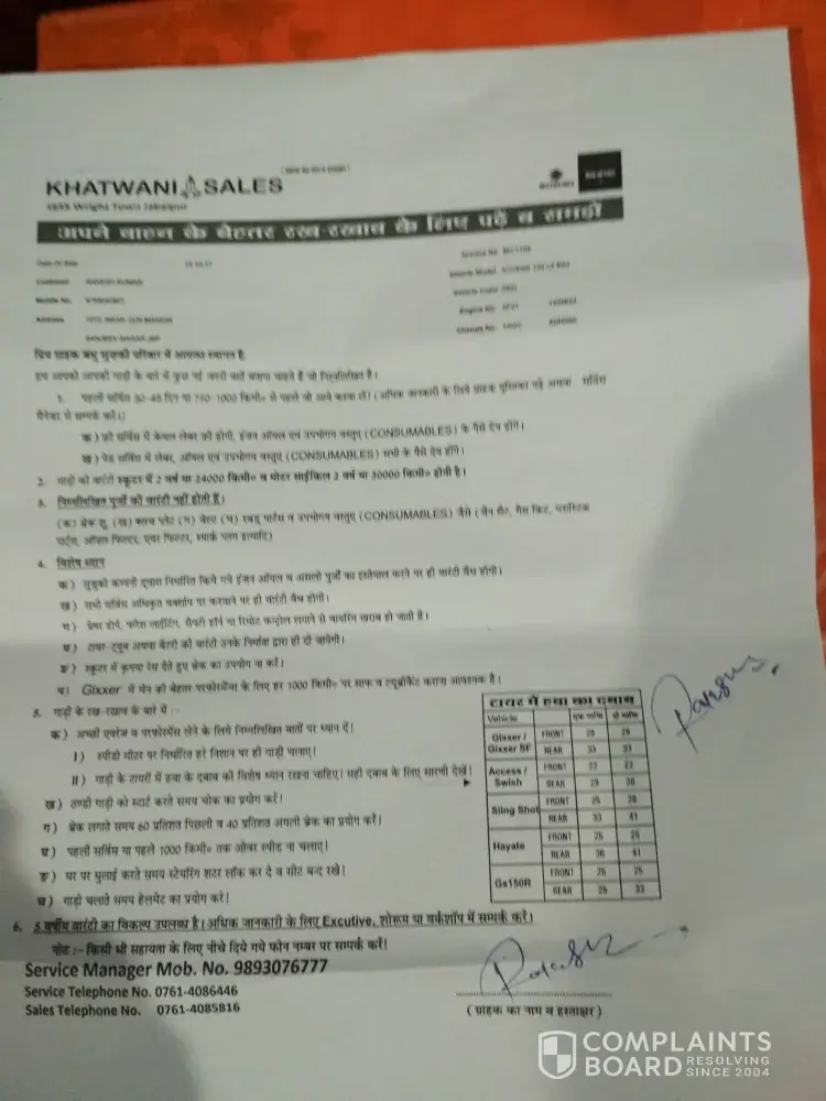 Further to above, this is also brought into your kind notice that I got message from Suzuki Access/Paytm that vehicle delivered successfully on 07.11.2017 but fact is that vehicle delivered on 13.10.2017 and as per terms and conditions, cash back amount was to be credited within 24 hours but it has been delayed abnormally. Meanwhile, I frequently met with Khatwani Sales and Service, who is the authorised distributor of Suzuki Access, 125 in Jabalpur, Near to Bhanwartal Garden, (M.P.) but they replied simply that I can not help you and contact only to Paytm.