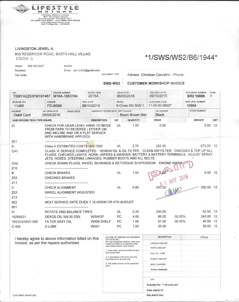 PS: I have attached 2 documents for the proof. (1. Bill 2.Oil change reciept dated one day before service)