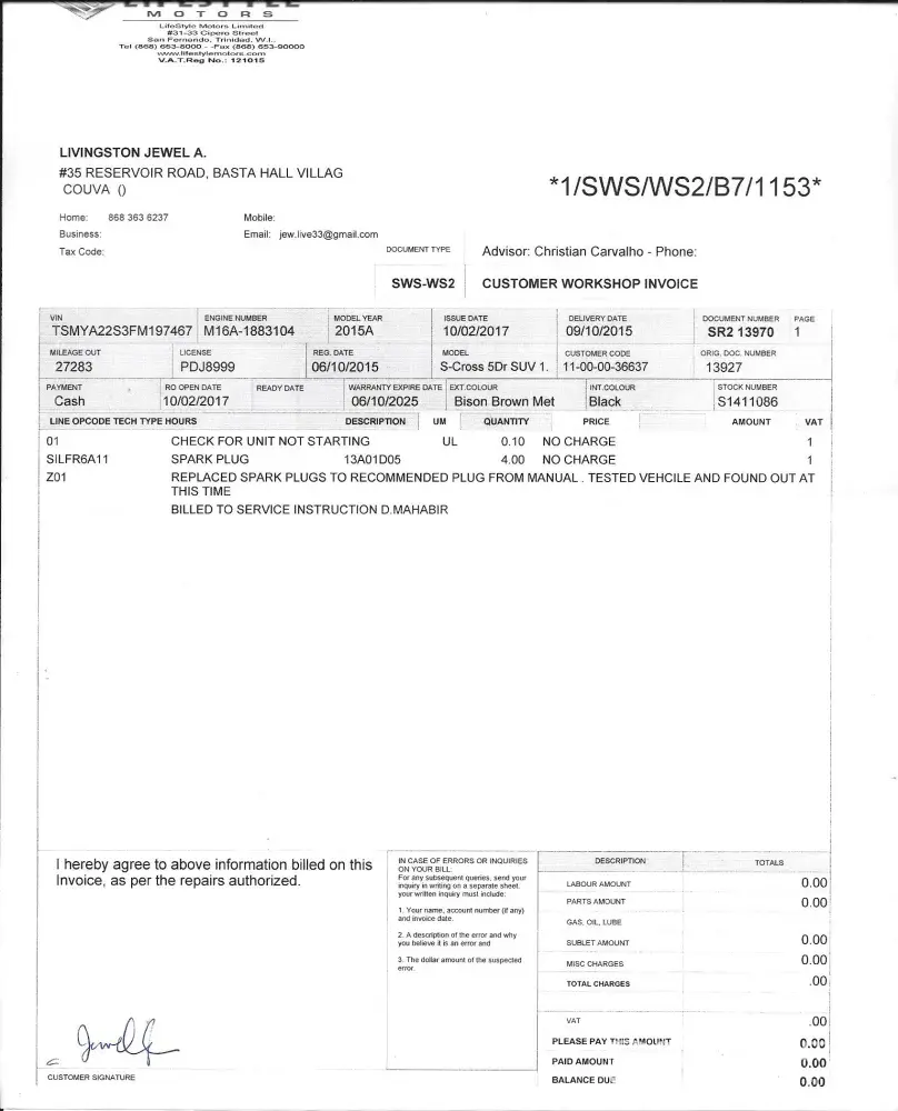 I am so disappointed as my trust was badly shattered due to this incidence. I onyl go to Suzuki Motors for reliablity and trust otherwise I can go to any street work shop for same services. I am deeply hurt due to this incidence and will never ever go to ANY of Suzuki show room from now onward and will advice the same to all my dear one's. I will prefer road side work shops as same is going on at Suzuki "authorised" dealers.