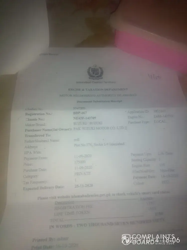 I booked my Alto AGS on by paying full amount PKR 1528000/- in shape of pay order to Pak Suzuki ltd via authorized dealer Suzuki Motorways dtd: 15 Sept 2021, they provided me booking no PBO [protected] on 15 Oct 2021 after a month delay with the tentative date of delivery 10 Feb. 2022, i also paid FED which was imposed later by Federal government PKR 43000/- just bcz of negligence of Authorized dealer, but still I have not yet received the booked unit no one is responding. they always have excuses but no one is responding no the Customer care nor Dealer, what should i do ? Should I go to Court of Law or any other regulatory authority ?