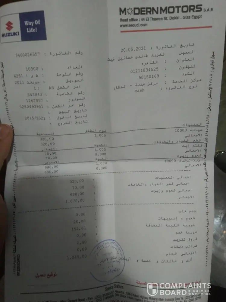 Modern Motors contacted me to bring the car to them so they can help fixing the damages with reduced budget if i recalled the complaint against them and i agreed.