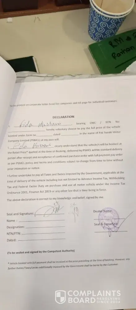 Fraudulent booking by suzuki summit motor, Lahore, Pakistan