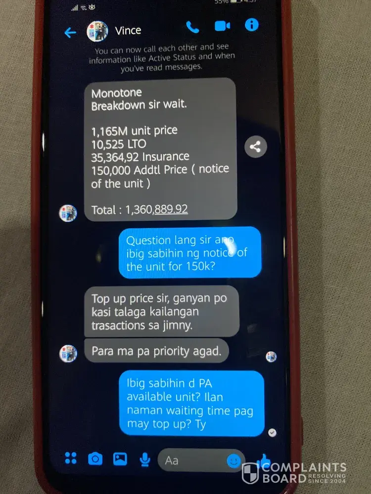 The manager and the sales representative of the branch informed and advised me that my car wont be repaired until the insurance company pays the full amount of the car damages for the reason that my insurance company is not the in house insurance company they are offering.