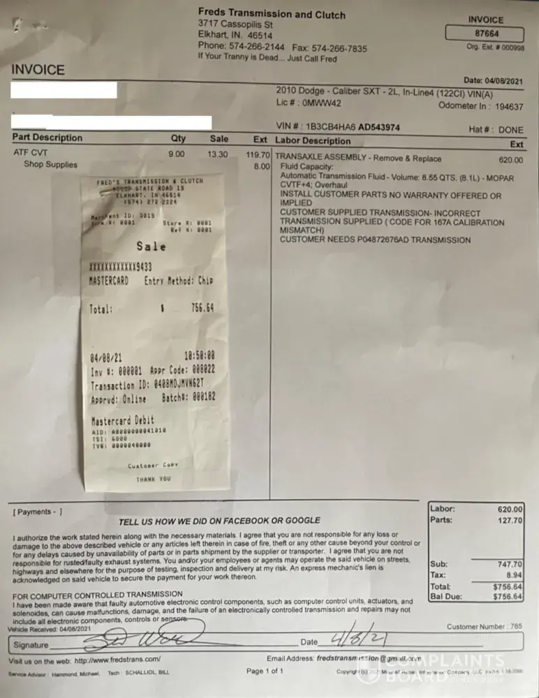 HOW DO WE FINALLY GET OUR KONEY BACK FOR THE BROKEN TRANSMISSION AND LABOR?
