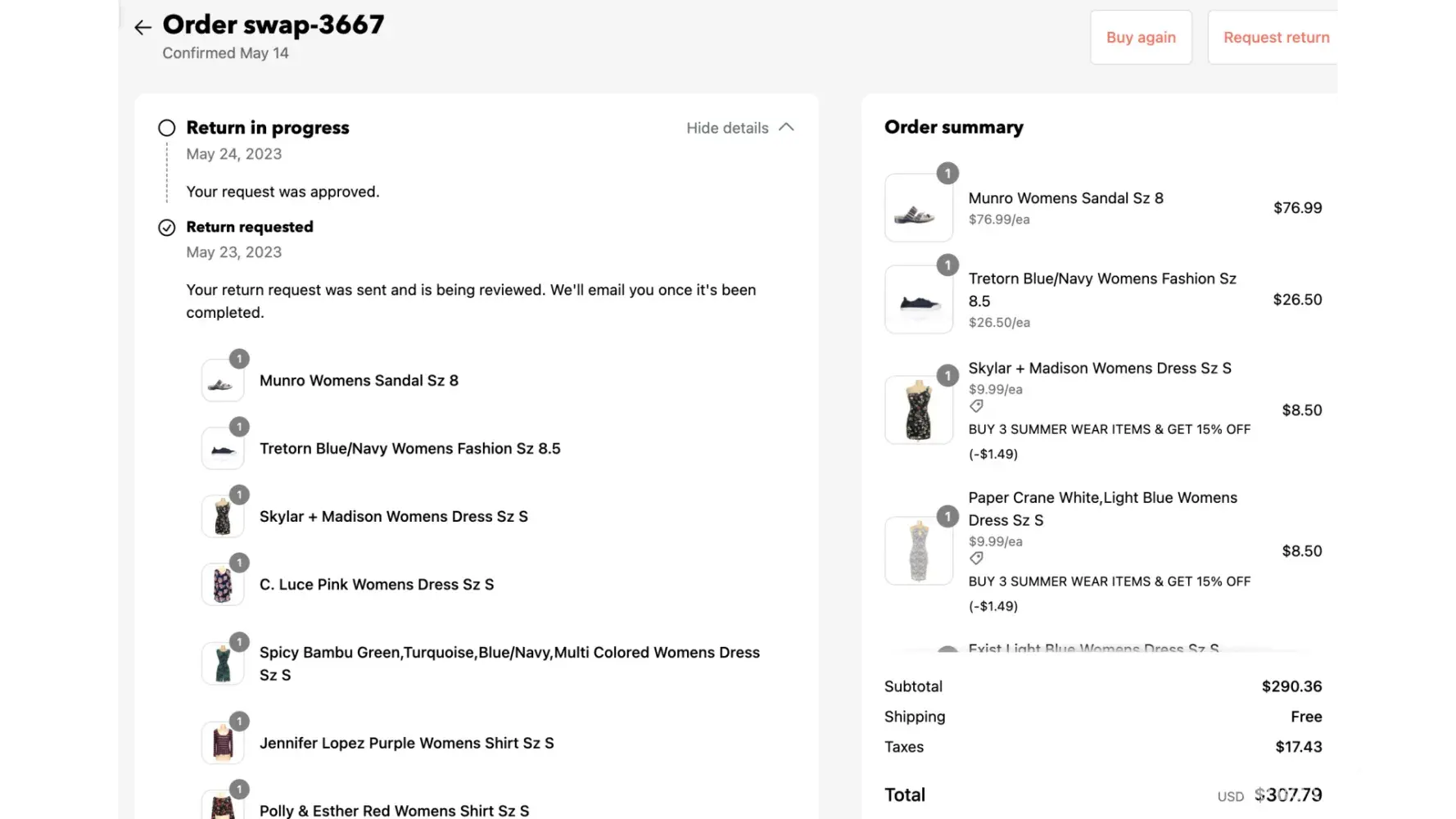 My order finally arrived and 2 out of 4 items I'm keeping. I was sent shipping label to put on the box, but FedEx says the label is incomplete, therefore they don't know where it is and swap has no record of sending the label even though I still have the email. FedEx says swap will receive the box or reject it, not sure really. Even if they receive it, I not too trusting if I will get credited for it. I sent 3 emails with no response yet.