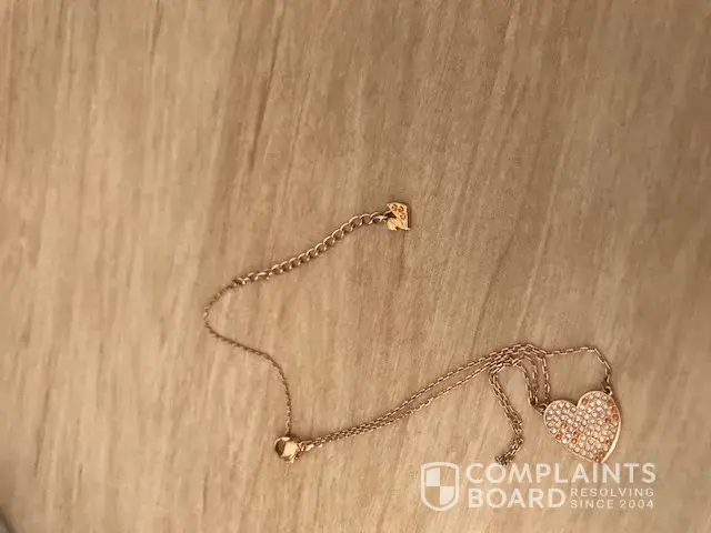 brought the Necklace out to me and a good amount of the diamonds on both the heart of the necklace and the Swarovski Swan have fallen off. I would
