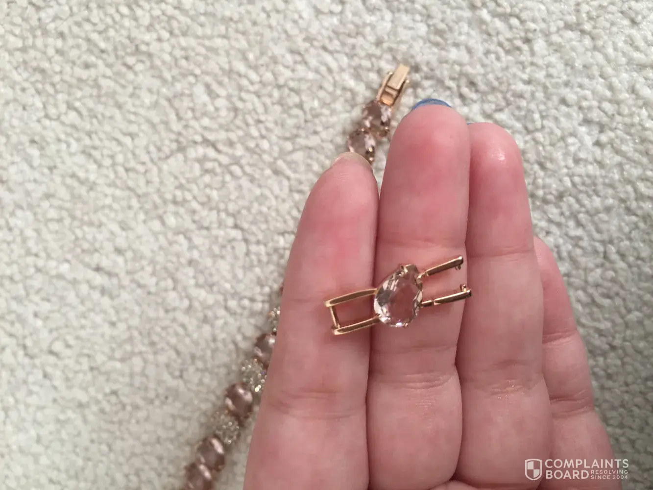 I wonder what kind of analysis by competent employees have been done from the photo and has resulted such a consumer complaint feedback. I wonder to ask these Quality Managent Responsible or who the responsible is "what is the guarantee of Swarokovski products for" if not in case of non-user failure".