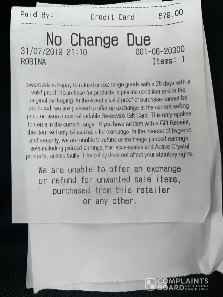 swarovski pen complaint