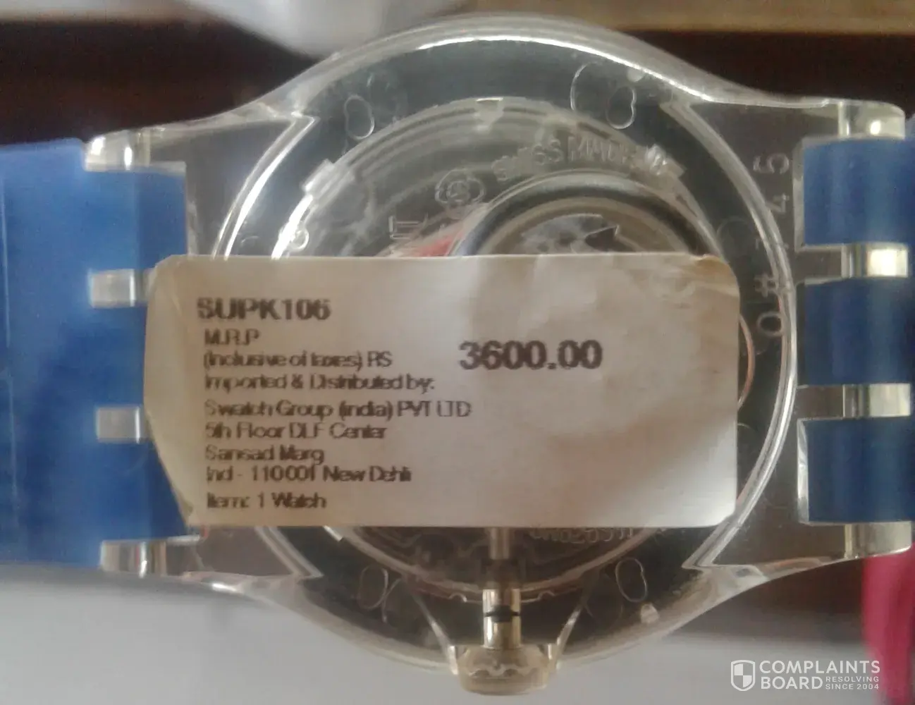Why was i given an old stock with mrp of 3600 but overcharged? The watch had no dial shield and it wasn't running at the time of handing over(We had to go back to the service centre to tell them that the watch wasn't working)...This when brought to radhika 's attention was answered very matter of fact tone...Maybe the dial shield fell off, some battery problem etc! The box in which the watch was handed over to me is so old, filled with scratches and doesn't reflect the high quality swatch has a worldwide repute for.Radhika says she has charged us as per the new rate but then why was an old stock of mrp 3600 given to me?