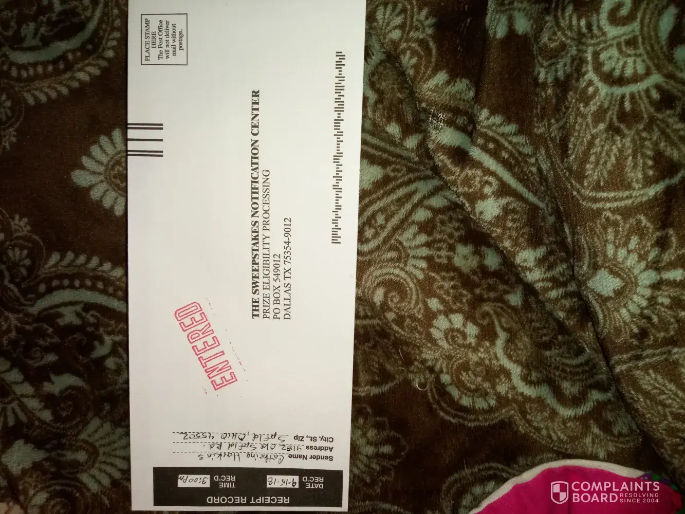 I have never heard or sent any sweepstakes entry forms to this location, dallas texas. There is no name of a company either & only a post office box. I suggest if you went to the po box in dallas texas, [protected] you may find out who is behind this scam.