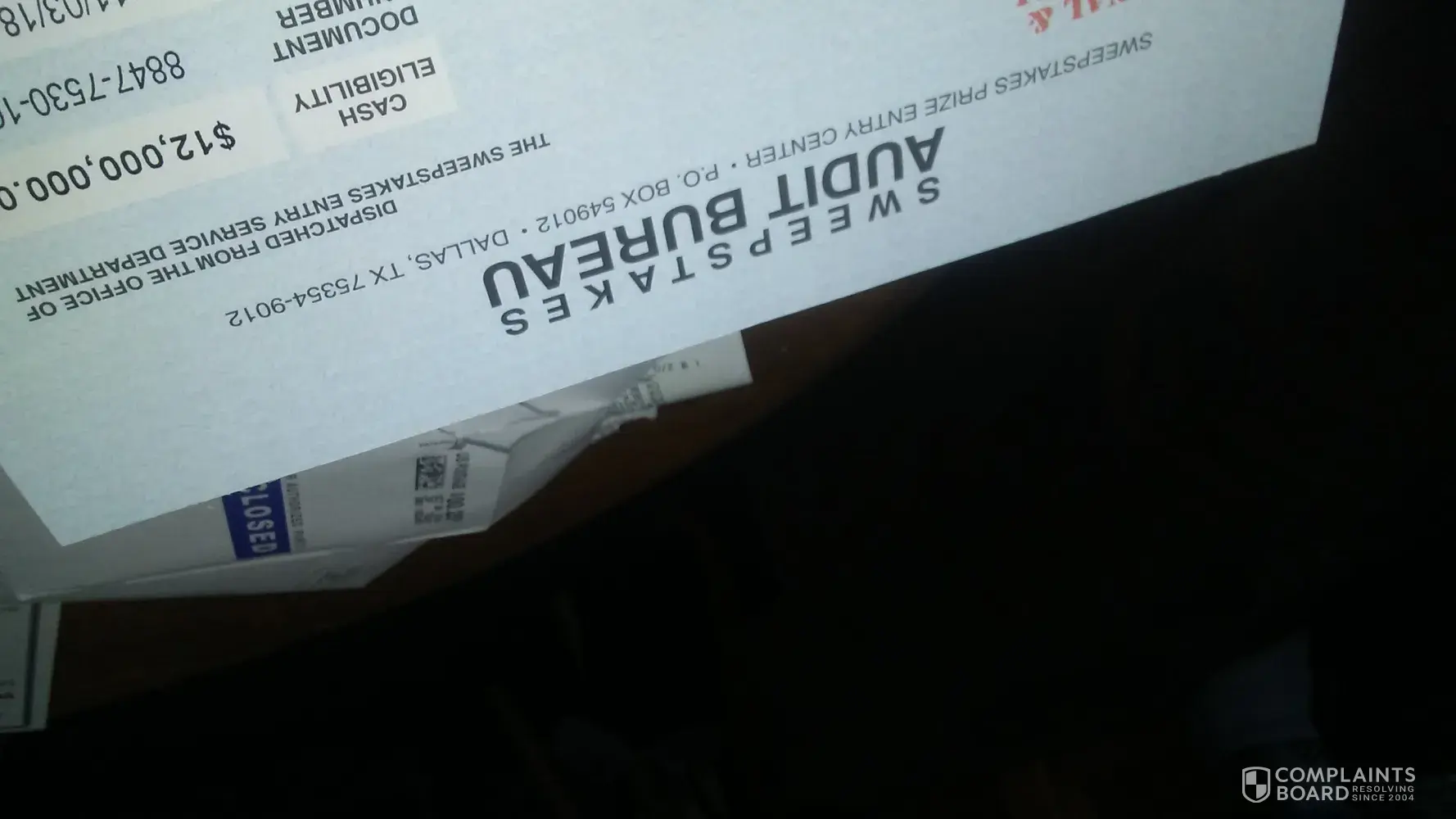 Sweepstakes Audit Bureau addressPO Box 549012, Dallas, Texas, 75354-9012, United States