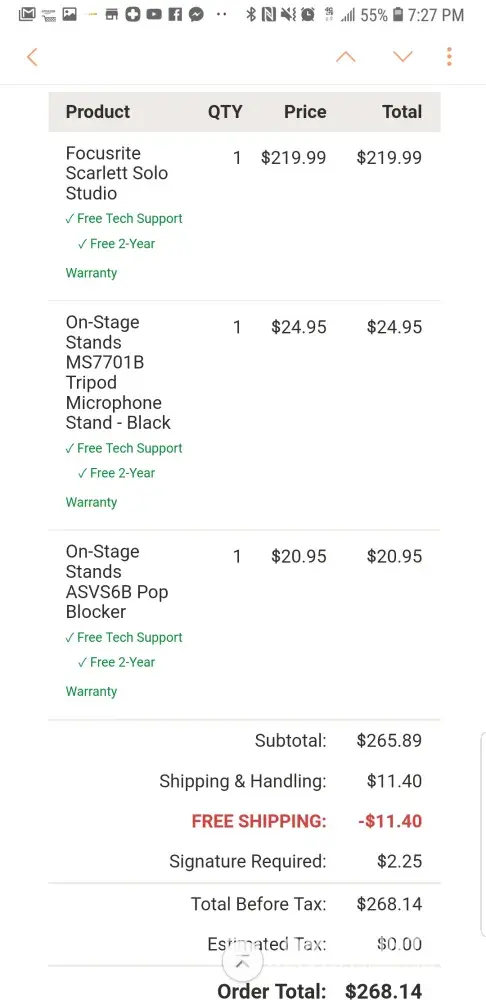 I recently made a purchase on Sweetwater.com for two drumsets. I was pleased to speak with a friendly gentleman who was able to sell them to me and inform me of the amazing deals and shipping options available. He informed me that I could receive free shipping and that the drumsets would arrive on the 1st or 2nd of the month.