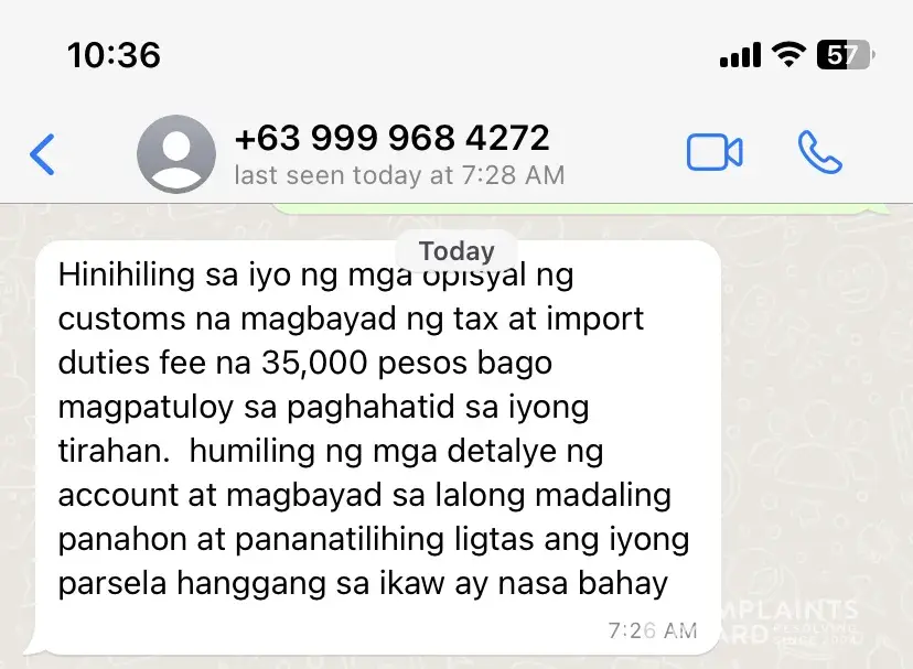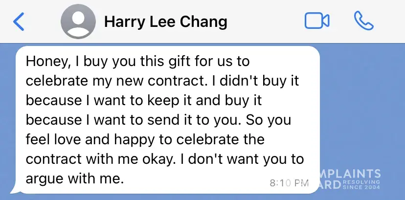 Someone named Harry Lee Chang (+[protected]) messaged me in IG and said that he wants to know me better and chat in whatsapp instead. We continue talking in whatsapp and he always greets me good morning with flowery words/quotes. Then he told me that he has a son and his prev wife died in an accident. His family is in Thailand and he was working in Greece(currently in contract in Oman). Then one day he asked me to pray for him so he can get the contract in Oman. And so he did. He accepted and to celebrate it he told me he bought a dior bag. I told him that I will accept it in person since I already have doubts on him but he insisted to deliver it via air freight (https://www.swiftdoorcourierxpress.com/trackingshippment/index.php). I said im not gonna give my details but he kept on asking me with his flowery words. I gave a general address(no house number or anything). And it is currently in “the Philippines†for me to accept. Someone contacted me via whatsapp. Haha very weird since no one contacts you via an app for parcel here the country. They said they are an agent and asking me 35,000 pesos($626) for the clearance of the parcel. I told them that im not gonna spend some money just for the package that was forcefully made me accept. Here are the details and chat from them lol