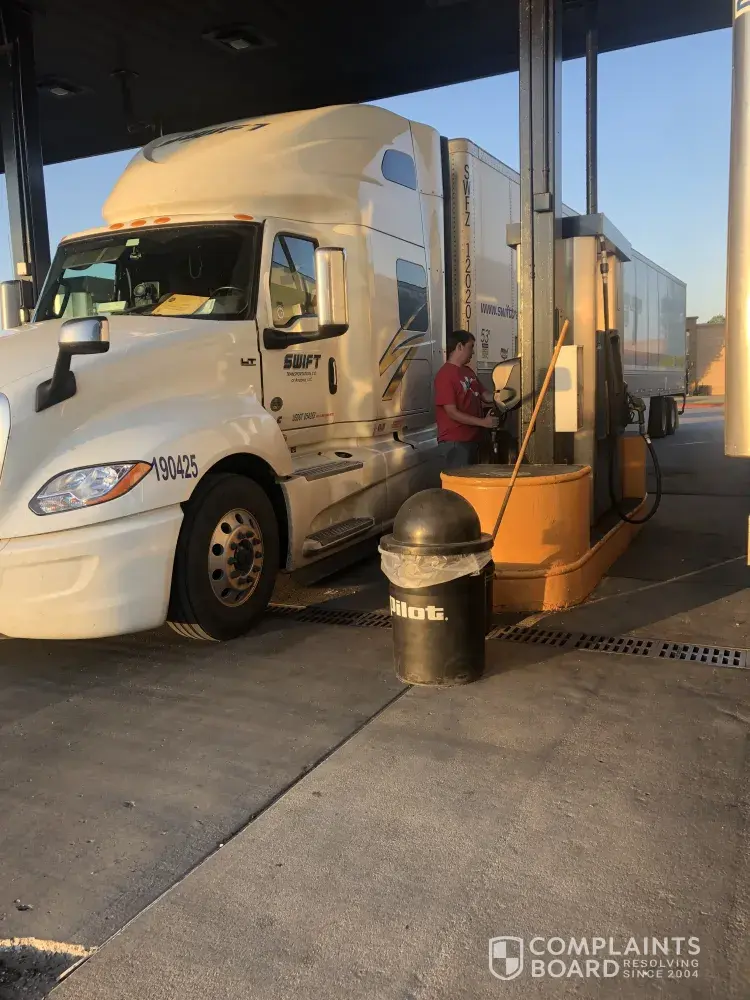 I drive for another company and I was in Georgia. we pulled into a pilot. That morning the pumps were running real slow the trucks were backed up waiting in line to fuel. There was parking on both sides of the lines for fuel that went down the middle. We had to wait quite a while to get to the pumps. meanwhile a man was just trying to get out of a parking spot and go around and get out. he went around and asked all of us if we can just hold back so that he could get out. then he proceeded to go to the Swift truck and asked him the same thing. The Swift driver was very ignorant, he said there was no way that he was going to hold back. he had to get fuel and get out of there and very rude the way he said it. He told him to [censored] off and he rolled up his window and move forward almost touching the truck in front of him, just to show the guy that he was not going to let him through.