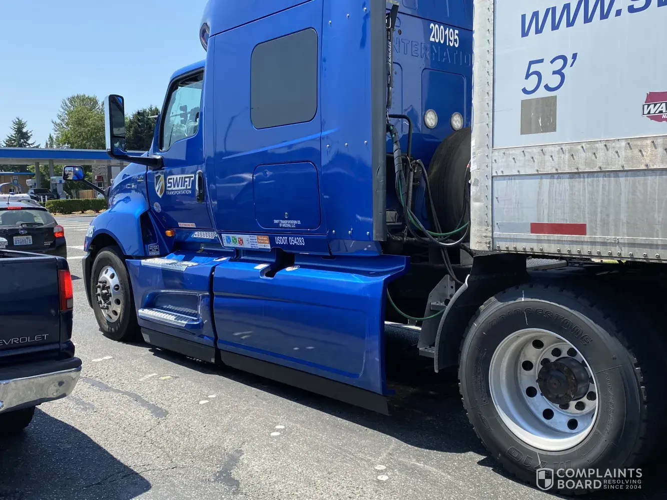 You know all of us truckers are out here doing the same job and I feel like we should all work a little bit better together and for him to be so ignorant and not helping him get out, it was not like he was trying to butt in the line for fuel, he just wanted to get out of his parking stall, so he could leave. People like this Swift Driver do not belong on the road, because if he is that ignorant at a fuel pump, how ignorant is he on the road? When I went to trucking school 5 years ago, I was taught to be courteous and I'm sure your Swift drivers are taught the same thing. I don't know if you will do anything about this driver but I feel like you should. his truck number is 21826. I know my company would not put up with this. I have pictures when the guy was asking him to move and then after he moved up close to the guys bumper also you can zoom in and see this drivers number on his truck. But your website won't take my pictures they're saying it's too big, so if you would like them you'll have to send me an email address. If you need more information feel free to talk to me if you want. my number is [protected] my name is Debbie. I just wanted to say I was very very disgusted with what I saw and disappointed in the swift driver. Thank you for your time.