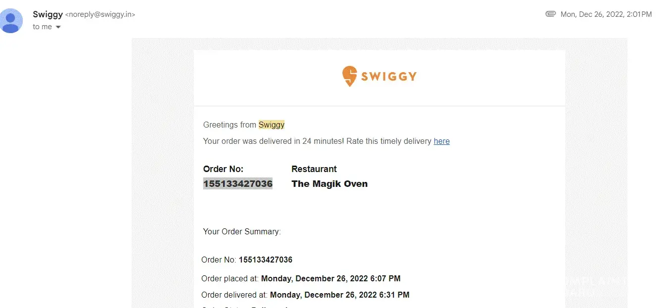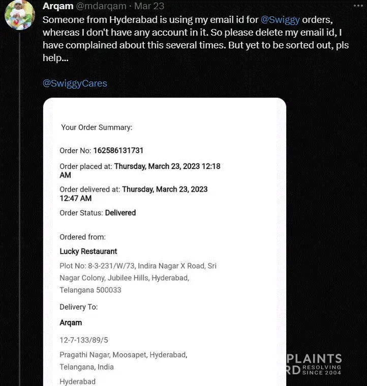 Swiggy complaints: history and resolution overview