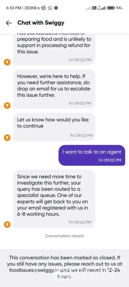 I never thought the customer service people of this HUGE company "SWIGGY" could be so rough and heartless.