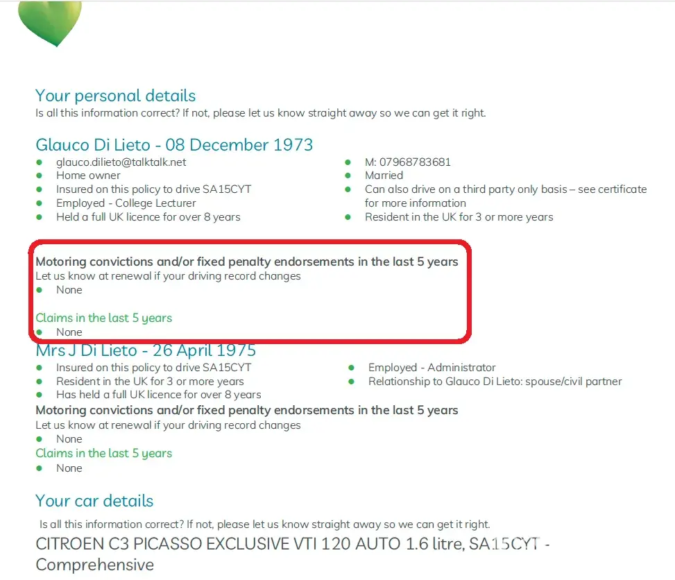We went with this company for my wife's car insurance as their quote was the lowest on Compare the Market. Unfortunately after signing up and paying, and with the insurance already in place, they emailed to say there was "something they needed to check" so we had to call them. They then proceeded to tell us that there was an "at fault" claim for one of the named drivers (myself) back in 2019, which was a total lie as I never made such claim and my current policy with LV (attached) clearly shows 5 years no claim, as we had honestly declared in the application.