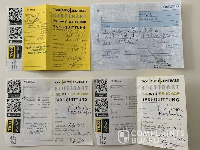 Besides of the usual compensation which should be around 400 EURO, attached Taxi costs which I had due to getting in and out to the airport. According to Marie Budner who was the only one who was very much supportive and re-booked my flight for next day, nothing went smoothly. She also confirmed that copy of Taxi costs will be sufficient to get these costs reimbursed (262 EURO). For sure I can send originals to any address mentioned from your side.