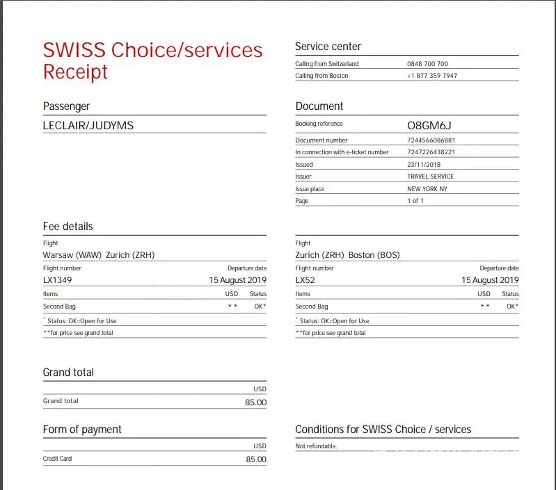 Now we've spent over $900 because Swiss dint check our passports correctly. They then lose our luggage so we have to go purchase clothes, toiletries etc. Costing $400. No one at Zurich could find our bags or contact us...