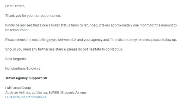 Swiss Airlines sent a mail to me on 16th July claiming that they have refunded the amount of 427.5 CHF. But I never received any money till date.