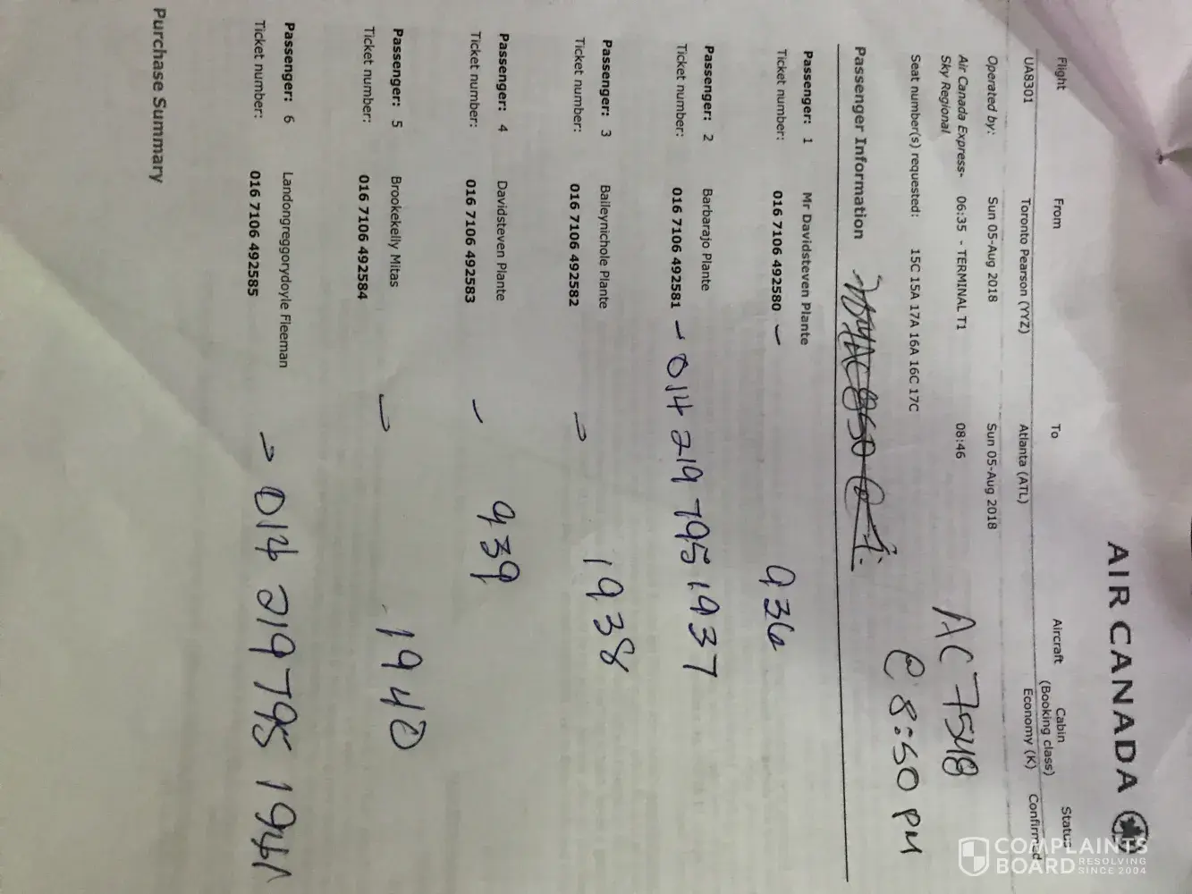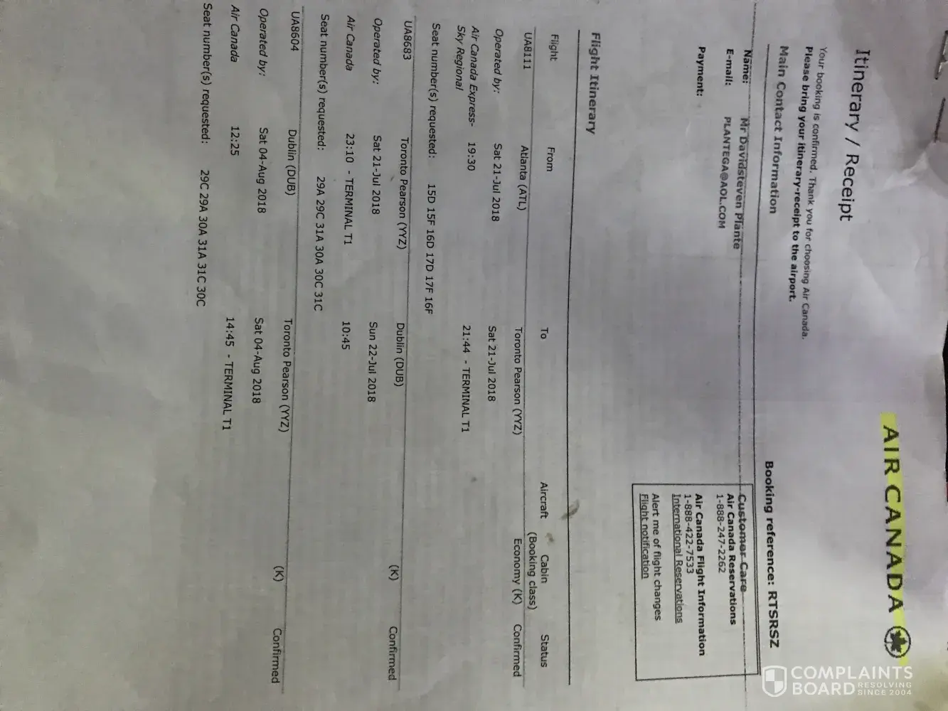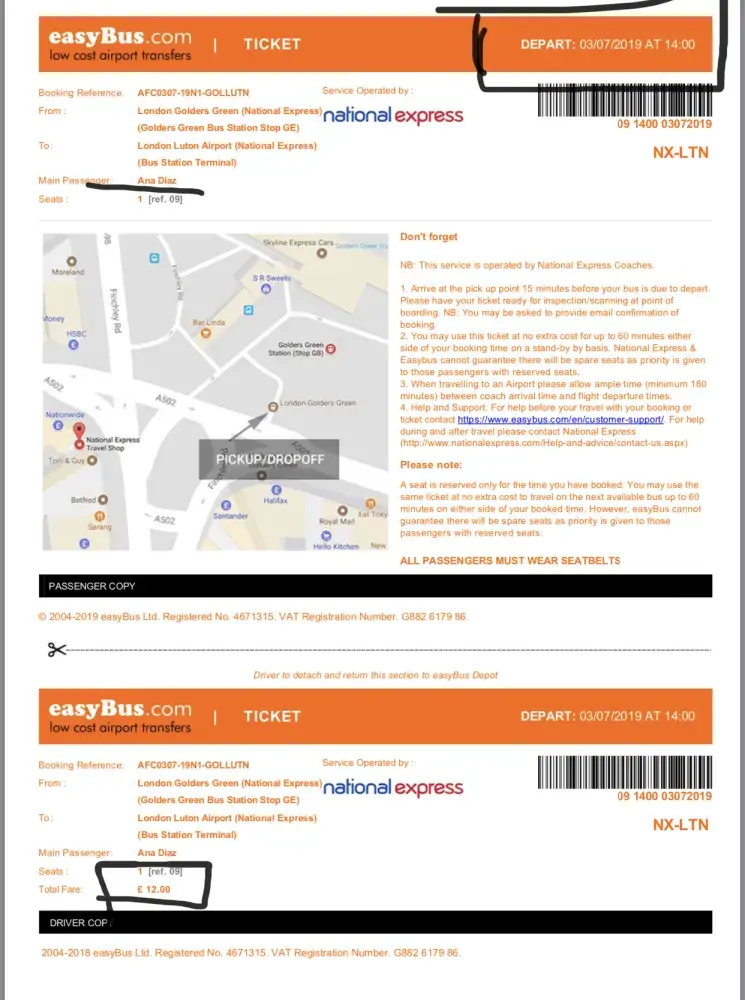 Here are all booking informations and my full name.