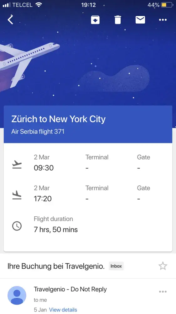 We didn't take flight that day, we needed to stay in belgrade for one night and then buy tickets by ourselves which costed additional 1000 chf. My husbands visa was ok but of course he didn't want to travel without me so both tickets were lost, one night in a hotel in new york and our time.