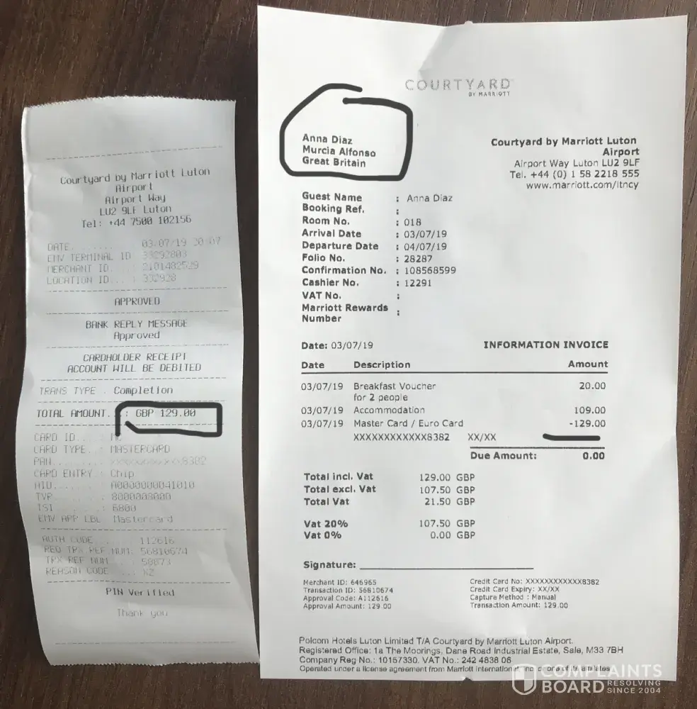 I was going to Murcia the 3th of July. I was in the queue for the check in waiting one hour and a half. There were three flight with ryanair at the same time more or less. They were just calling people for one flight and no information about the rest. So we were letting people go in for the flight was called. Once it was our turn (i was with another lady), the guy just said at first ‘'there's no space in the plane go to the control with all the luggages'', we went to the control and they didn't let us go in so we came back to the check in and he didn't even know what to say so we just were told ‘'you have to make a rebook of your flight'' and in 30 min was my flight. I went to another one to ask and he didn't even hear us and he just said ‘'sorry you should come before'' and i was in the airport 4 hours before my flight. No solutions and we were gonna miss our flight. Another girl, blonde hair and really rude, didn't hear us too. At the end, three more people were there in the same situation so they trusted us. They gave us another flight for the following day but we were treated really bad, they ignored us, with 40 kilos each abandoned at the airport for 24 hours because our flight was at the same time the following day. We missed our flight. They didn't give us any option to stay somewhere and we had just left our houses in London, we were moving to Spain. We took an hotel by ourselves. So please, i need a solution about it because it was inaceptable because we missed our flight with no reason and we were carrying our luggages so it hurt our backs a lot and once we arrived to Spain we needed medical care. I added all the documents and also the bus and the uber i took to get the airport the 3rd of July to verify i was in the airport with enough time.