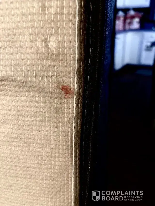 My mattress was delivered by 3 men, not in any plastic, had a red stain on edge that looks like blood. One side of mattress was unraveling in several places.