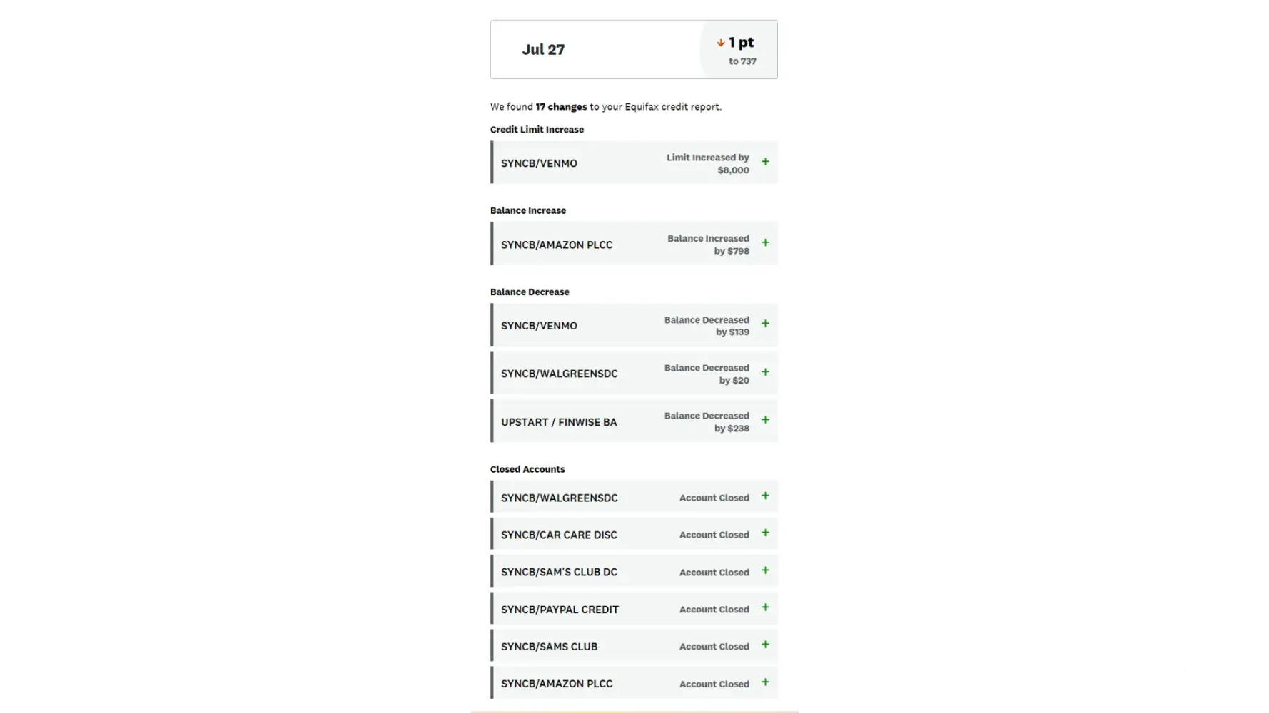 I literally pissed my pants laughing. Now, while these closures actually 'increased' my scores by about 11 points (due to the age of the cards relative to the age of other accounts on my credit profile--paired with the fact that I don't carry balances so there was no hit on my credit utilization), other people that may not have enough credit outside of Synchrony could have been hit hard.