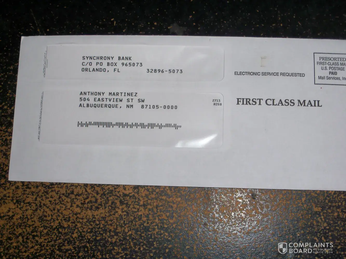 You are sending mail to my home address, 504 Eastview St. SW, Albuquerque, NM 87105. addressed to Anthony Martinez. Anthony Martinez does NOT live at this address, and never has. My name is Ellery Worthen, I have lived at this address since the house was built in 1978.