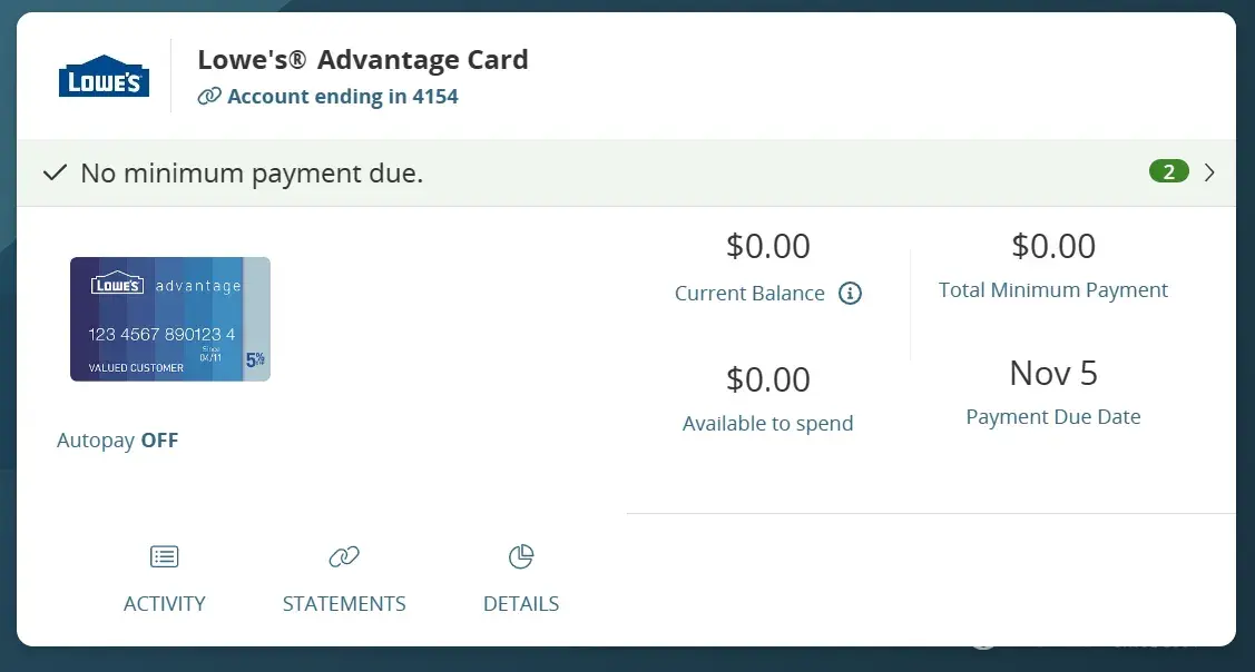 Synchrony Bank Lowe's Credit Card