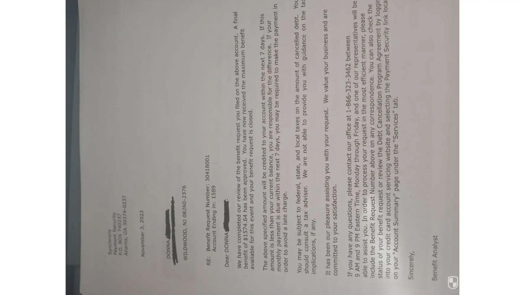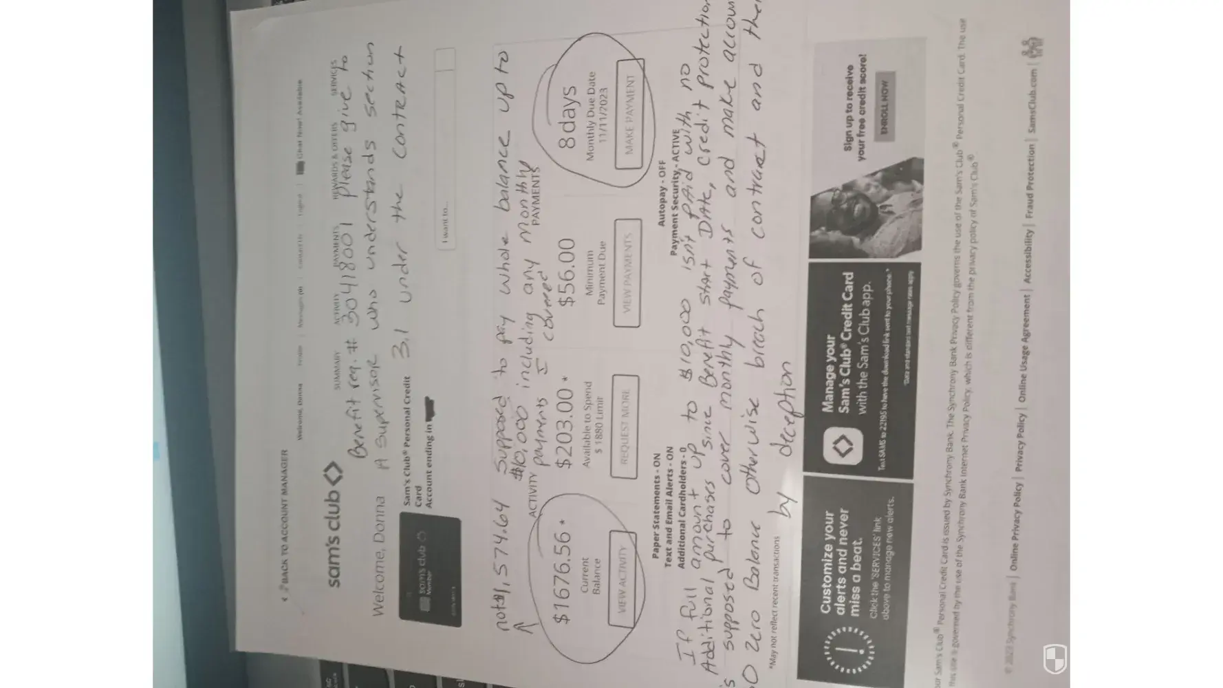 i have 6 synchrony credit cards each with payment security. over the years any claim to activate benefits is easy, after that its a nightmare. under 3.1 of their contract, they are supposed to cover or credit you, your monthly payments. they do not reimburse you or credit you. Then if no additional purchases since benefit activation date, they are supposed to completely pay the balance owed on each account up to $10,000. When making your own monthly minimum payments the final pay out doesnt cover your whole debt. this is theft by deception and beach of contract. I have proof over the years synchrony does this repeatedly. if they are stealing and doing a breach of contract with me several times over the years, everyone who does business with these deceitful scammers is getting tricked and stolen from as well. if those 9/10 of a penny adds to millions and billions for gas imagine how much money they are stealing from all customers! please any lawyers contact me at [protected]@gmail.com or fax me at [protected]. any information I would like in writing.