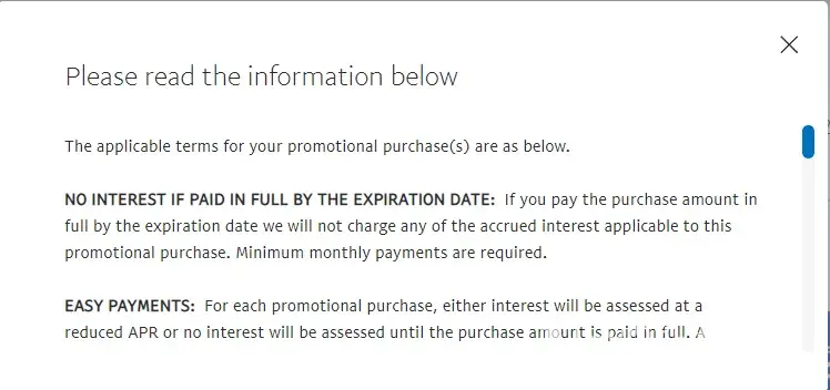 the promo rate i was told would be 6 months 0% and they gave me the 0% on the 500.00 not the larger amoutnt