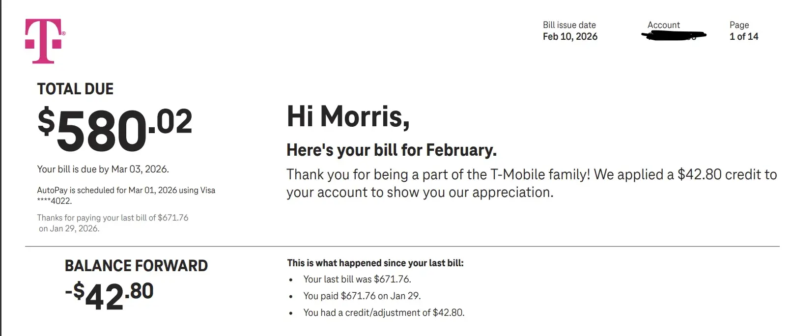 I switched to Mint Mobile, 10 days before my cycle ended. Taking my automated payment off-line as well. Thinking they'd send me a final bill. They did and I paid it online, and if any late charges were owed it should've been stated then. Two days later they issued late charges and I received a bill for a partial month, fees, taxes, and nondescript...