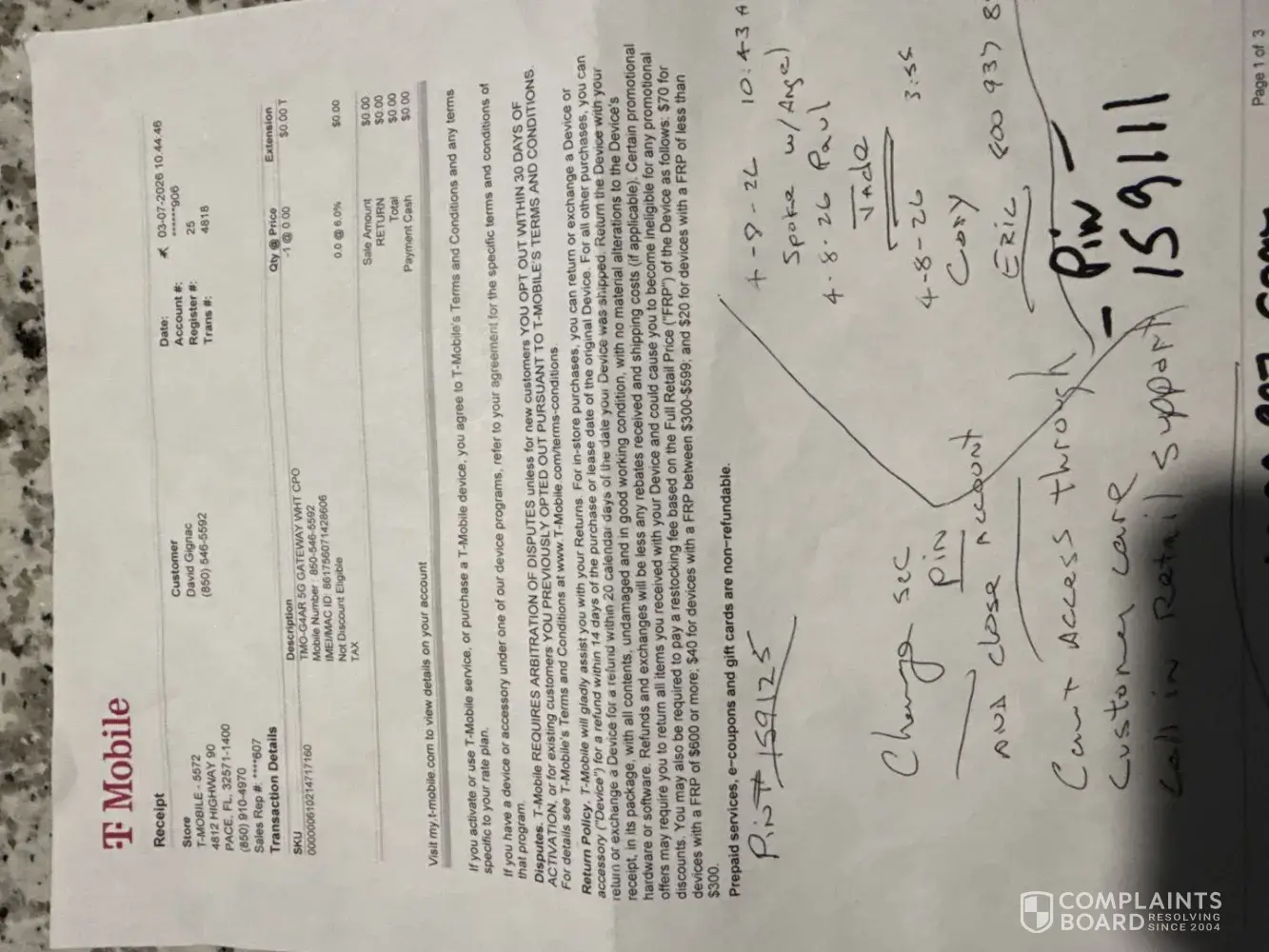 T-Mobile after looking at my bill before and then when I look at it again I was charged $42.80 for something that was returned 42 managers from other stores corporate stores customer service customer service rep say that they shouldn't have made the story you can show me where I return the item to see the I return the product showed me on the computer...
