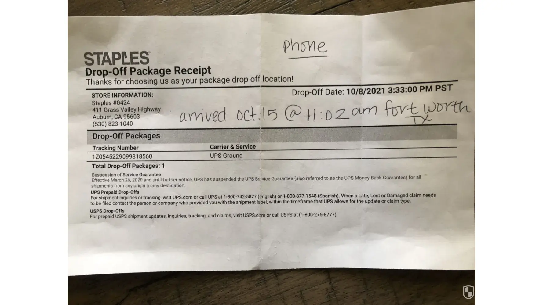 Until today 9/27/2021, I called again and the Rep told us they can't locate the phone at the warehouse and tell me to file a complaint with USPS. I went to the post office to open a claim and learned that I can only open the claim between 31 days to 59 days from the mailing date.