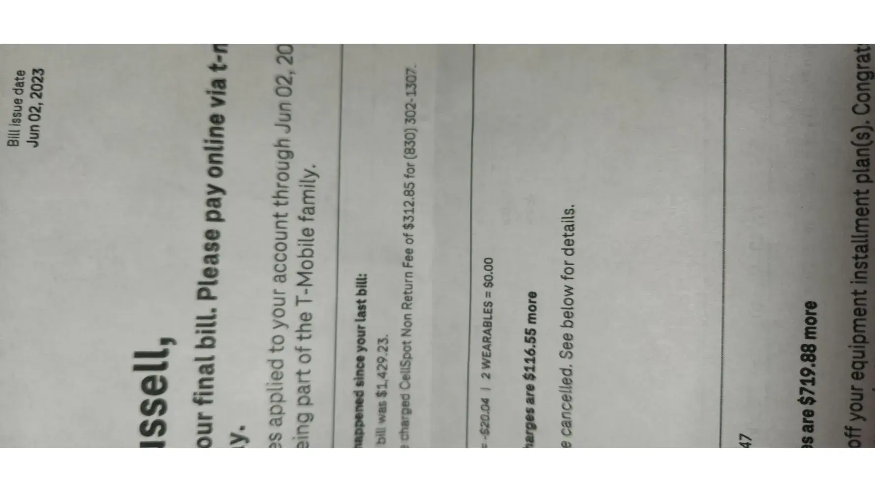 T-Mobile USA Canceled Phone Account