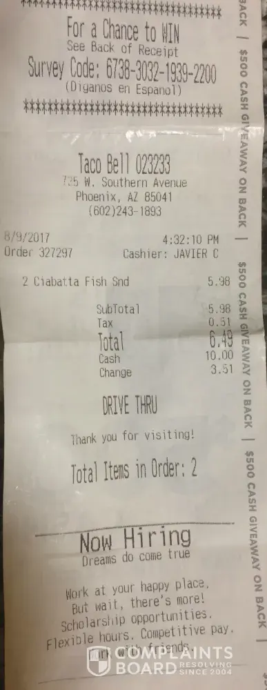 Taco Bell Complaints Page 100 of 124