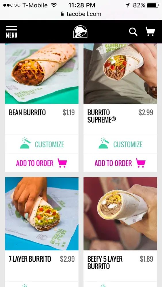 I was so unimpressed with the size of the tacos and burrito which I purchased. They were so thin and hardly had any filling to make eating the food satisfying. I have included actual pics of the food which I paid for vs. the food pics Taco Bell advertises. The disparity is such a joke. It's not what anyone would expect to receive, and certainly not worth the money. I had been going to Taco Bell for many years yet hadn't gone to a location for quite some time. This last trip was totally disappointing and unsatisfying.