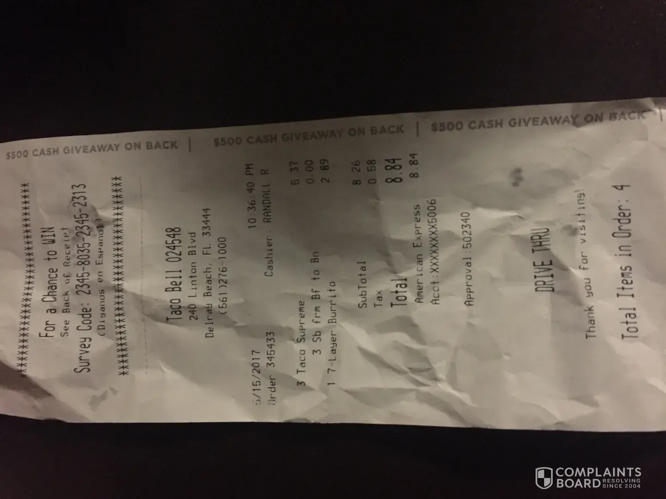 When I brought the error back to the cashier I was told that the only thing they could do was have me order and pay again. So I ordered a crunch wrap supreme and asked for my soft taco supreme since I already paid for it. I only received the crunch wrap supreme.