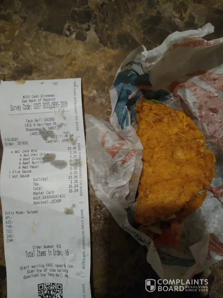 Read full complaintHow taco bell service their food